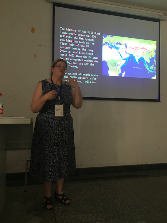 四川大学120周年校庆暨金沙集团1862cc成色20周年院庆之际,为推进世界一流大学与一流学科建设,在“2016四川大学暑期国际课程周”期间美国西雅图中央学院艺术史教授Melanie Enderle来我院进行一系列讲座,此系列讲座在A2—5进行,讲座由美术学系赵成清老师主持,百名学生聆听此次讲座。