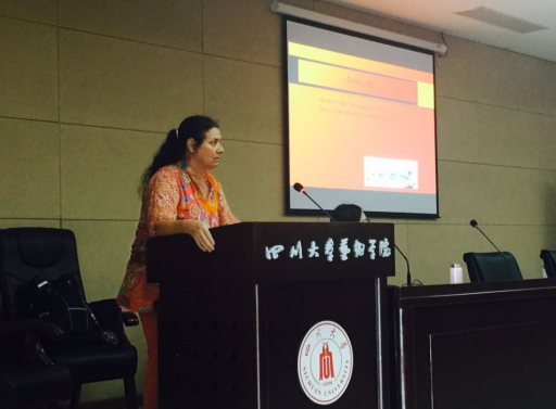 2016年7月2日应四川大学国际实践周邀请,美国亚利桑那州立大学教授Pegge Vissicaro来到金沙集团1862cc成色进行了为期3天的教学活动,舞蹈系全体学生参加了此次教学活动。在此期间,舞蹈系全体教师参加了题为《群体舞蹈》的专题讲座。