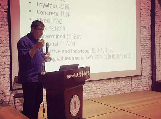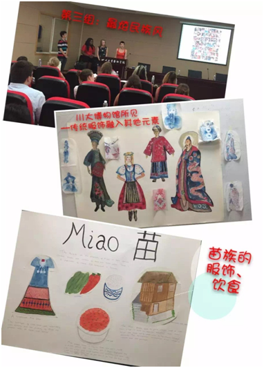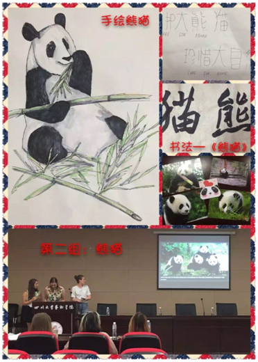 随后,留学生们分成小组,分别以四川古今建筑对比,中国少数民族,熊猫研究,四川皮影戏为主题对自己这两周来的学习生活进行了汇报总结。有些学生将两周来的所闻所见拍成照片,配以文字说明,制作成数据资料详尽的PPT,为大家介绍了四川古今建筑的特点和演化,以及大熊猫、小熊猫的有关知识。有些同学利用自己所学的专业知识介绍了中国少数民族知识,并且将中国少数民族服饰元素融入到国外传统民族服装中,进行大胆的创新设计。还有的学生借鉴了中国皮影艺术表现手法,用纸张制作了形象生动的角色,通过精心制作的视频向大家展示了一个令人感动的爱情故事。留学生们的精彩表演赢得了在场师生的一致好评。