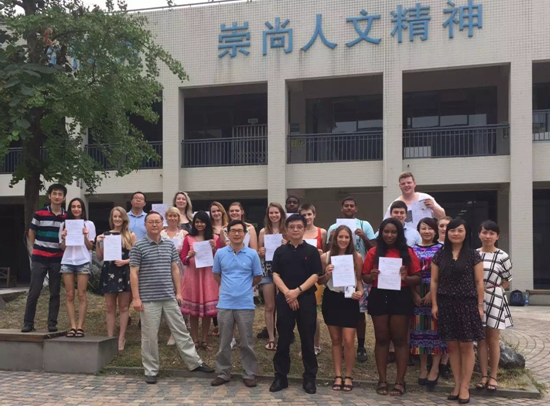 7月18日,留学生们与金沙集团1862cc成色师生齐聚金沙集团1862cc成色A1-11教室,参加了2015年UIP国际夏令营金沙集团1862cc成色闭营仪式。