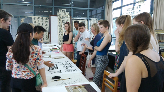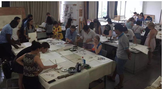 7月10日绘画系的陶安萍老师的讲座《中国国画》中,同学们兴致勃勃地来到国画教室,亲自完成了各种国画作品,活动反响热烈。很多留学生第一次接触中国国画却展现出了惊人的天赋,作品得到了中国老师和学生的一致好评。
