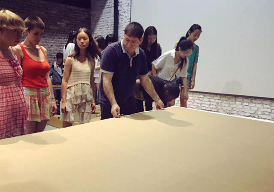 7月13日-14日,享誉国际的英国伯明翰城市大学副校长Bashir Markhoul教授带来了他独具匠心的课程《居住空间》。同学们利用尺寸巨大瓦楞纸板拼搭出一个之字形的密闭空间,在空间中的一些狭窄位置垂挂细长的发丝。这样人们在穿梭于空间中的时候会不经意地与发丝接触,从而产生一种无法言语的神秘感。这种独特的设计得到了师生们的一致好评。