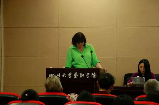 第二位主讲人是瓦西里耶夫娜·玛利娅,她是一位功勋艺术家,同时也是架上绘画和大型壁画艺术家。她的许多作品都被博物馆收藏,她在此次讲座中主要介绍了俄罗斯的一位重要艺术家——梅尔尼科夫,对他的艺术风格、艺术创作经历、优秀的中国学生都做了详细的讲解。